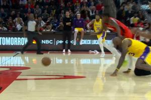 GIF-東契奇被捅了一下丟球 詹姆斯沒剎住車 火箭笑納快攻暴扣