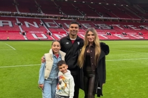 體育資訊3月17日訊 曼聯(lián)中場卡塞米羅更新社媒,曬出全家在老特拉福德的合影。