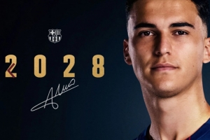 科爾特斯的續(xù)約儀式在甘珀體育城舉行,而且今天正好是他的21歲生日。2021年夏天,科爾特斯從薩拉戈薩青年隊(duì)加盟巴薩。起初,他加入了俱樂部青年B隊(duì),在適應(yīng)了一個(gè)賽季后,他在2022-23賽季被租借到達(dá)姆參加榮譽(yù)聯(lián)賽。