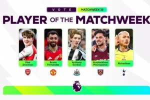體育資訊3月17日訊 英超官方公布了本輪的最佳候選名單,由B費(fèi)、道曼領(lǐng)銜。