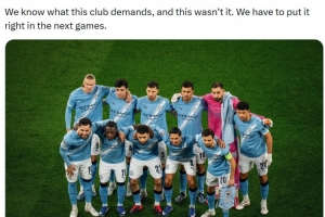哈蘭德本場比賽首發出場打進一球,他在個人社媒曬出全隊賽前合影,配文鼓勵球隊寫道:“我們知道這支球隊的目標,而本場的表現顯然沒有達到標準。我們必須在接下來的比賽中做的更好。”