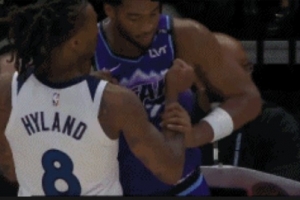 GIF-海蘭德哨響后拿球&哈克萊斯搶球引發小沖突 兩人各吃1T