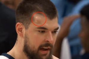 GIF-祖巴茨防守頭上被克林根打出包,回更衣室了