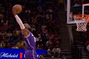 體育資訊3月19日訊 湖人客場(chǎng)再戰(zhàn)火箭,截至發(fā)稿詹姆斯已經(jīng)上演3次炸裂扣籃。