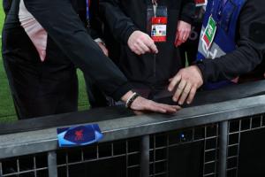 ESPN曬照,之后攝影師和利物浦工作人員對諾阿·朗受傷地點進行檢查。