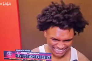 下一篇: 今天你防杰倫·格林?阿門賽前熱身戴著耳機~愜意運球~
